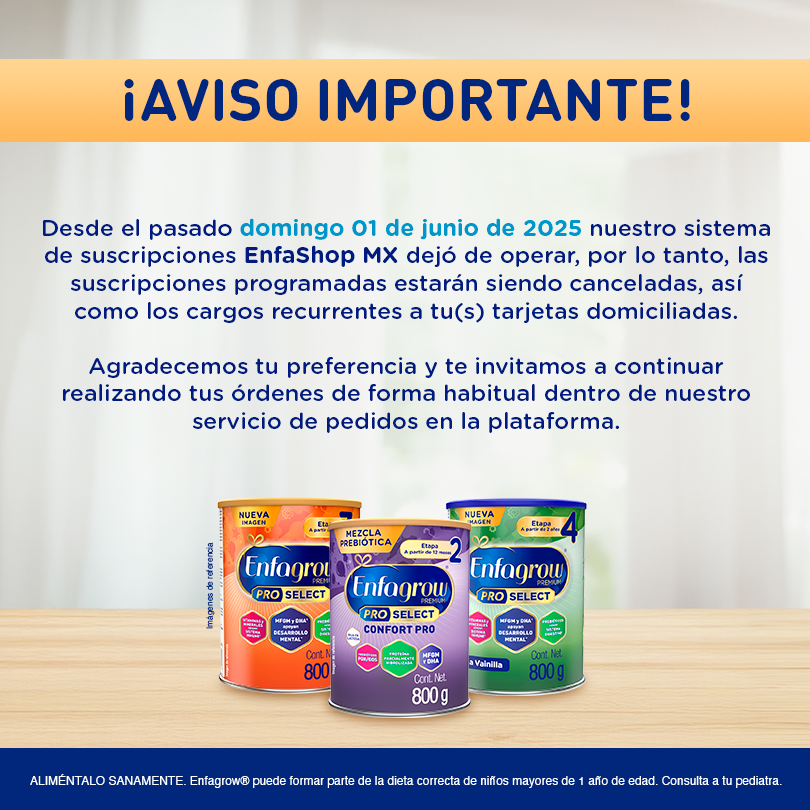 Si tienes dudas de tu compra online escríbenos a enfashop@reckitt.com incluyendo el número de tu orden y correo con el que realizaste la compra.